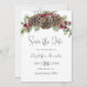 Watercolor Pine Winter Berries Christmas Wedding Save The Date
