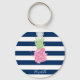 Watercolor Pineapple Tropical ,Navy Blue Striped Keychain