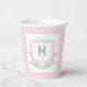 Watercolor Pink 1st Birthday Monogram Crest Party Paper Cups