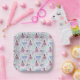 Watercolor Pink & Blue Palm Tree Pattern Paper Plate