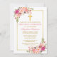 Watercolor Pink Blush Floral Communion Gold Invitation