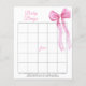 Watercolor pink bow Baby Bingo game