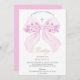 Watercolor Pink Bow Floral Girl Baptism Invitation