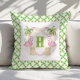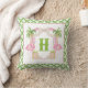 Watercolor Pink Flamingo Monogram Crest Christmas Throw Pillow