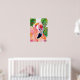 Watercolor Pink Flamingo with Green tropical leafs