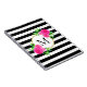 Watercolor Pink Floral Monogram Black White Stripe Notebook