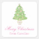 Watercolor Pink & Green Christmas Ginger Jar Tree Square Sticker