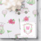 Watercolor Pink & Green Golf Cart Monogram Crest Square Sticker