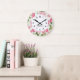 Watercolor Pink Hydrangea and Japanese Anemone Large Clock