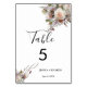 Elegant and modern wedding table number with burgundy and peach pink peony flower and greenery watercolor drawing. Ideal for a wedding in the fall or winter.