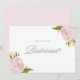 Watercolor Pink Peonies Will You Be My Bridesmaid Card. Ask your friends and family to be part of your wedding with this feminine and elegant "Will You Be My Bridesmaid" card featuring watercolor blush pink peonies, baby's breath, twigs and foliage. Personalize by adding your message at the back of the card. This customizable "will you be my" card is perfect for any wedding theme.