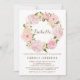 Watercolor Pink Peonies Wreath Christening Invitation