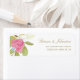 Elegant wedding rsvp return address label with a beautiful hand painted pink blush peony rose with sage green foliage and a modern editable taux gold chic calligraphy script against a clear white (changable color) background. ++++++++ Personalize with your name / names and address!