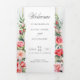 Lovely columns of elegant watercolor blush pink roses and green foliage on a subtle pastel watercolor background and centre label with gold borders. Features calligraphy text graphics in custom script font (or delete and customize in the design editor) with editable text fields for your ceremony details and wedding participants.