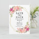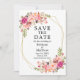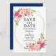 Elegant Watercolor Pink Blush Floral Save The Date Wedding Announcement Card includes pink roses and botanical greenery on a gold geometric frame. Navy Blue Back.