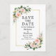 Elegant Watercolor Pink Blush Roses and White Flowers Save The Date Wedding Announcement Postcard includes botanical greenery on a gold frame.