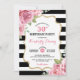 Paris-inspired birthday invitation featuring lovely watercolor pink roses and black & white striped background - FOR ALL AGES!