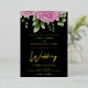 Black background and gold, rose gold or silver foil lettering watercolor pink roses wedding invitation template design ready for you to customize. This elegant foil wedding invitation design features roses and text in a handwritten font. You can personalize this invitation with your own details and colours.