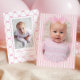 Watercolor Pink Stripes & Bows Photo Holiday Card