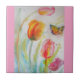 Watercolor Pink Tulip Floral flower Ceramic Tile