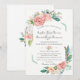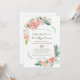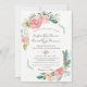 Romantic design featuring watercolour blush pink, peach and white flowers around a green broken frame, floral divider, all on a white background; on the back the same background and a floral bouquet. Use Personalize this template to add your info. For matching different wording and items, please, visit my Blush White Peonies Collection.