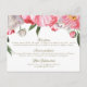 Enclosure card with watercolor pink and white peonies with gold-coloured text.