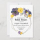 A dramatic spray of flowers in shades of yellow, grey and plum adorn this feminine bridal shower invitation.