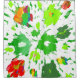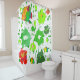 Bright multi-colour green pop art designed shower curtain with touches of orange and gold.