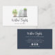 Unique and modern business cards feature a shelf of three potted house plants in soft watercolors, with your name, business name or occupation along the bottom in hand sketched script and modern sans serif lettering. Add your full contact details to the back. A modern and elegant choice for home stagers, interior designers, florists, house sitters and more.