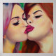 Pride art. Two girls Kissing watercolor digital art. LGBTQ love art.