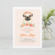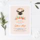 Watercolor Pug Peach Floral Baby Shower Invitation