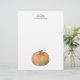 A watercolor and ink painting of an autumn harvest pumpkin adorns this customizable stationary!