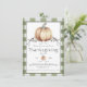 Celebrate the season of gratitude with this charming Green Watercolor Pumpkin Thanksgiving Dinner Invitation, the perfect way to gather loved ones for a festive harvest dinner. Featuring a hand-painted watercolor pumpkin accented with curling pumpkin vines, this design pairs beautifully with a buffalo plaid and gingham background for a cozy, rustic design. Personalized with your family name and details in clean modern typography, this invitation sets the tone for a warm and welcoming Thanksgiving dinner celebration.