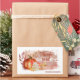 Watercolor pumpkins and autumn leave on a rose gold background with sparks. Stickers for small businesses.