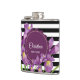 Watercolor Purple Iris Black White Stripes Pattern Hip Flask