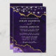 Modern Elegant Watercolor Purple and Gold Marble Agate Geode Wedding Invitation Card with String Lights