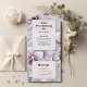 Experience the ease of wedding preparations with our Whimsical Watercolor Purple Orchid All-in-One Wedding Invitation. This innovative design seamlessly combines the invitation, RSVP, and details card into a single, cohesive masterpiece. Say goodbye to the hassle of managing multiple cards – our all-in-one invitation is a time-saving and stress-free solution for couples who seek convenience without compromising elegance.