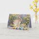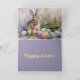 This Easter greeting card has a beautiful watercolor print of a rabbit, eggs and daffodils done in pastels. You can personalize all outside and inside greetings to give it that unique personal touch.