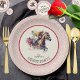 Elegant derby party ivory paper plates feature a watercolor race horse and jockey on the way to the finish line with a red pattern border. MATCHING items in our collection.
