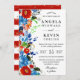 Watercolor Red and Blue Flowers Wedding Invitation