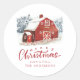 Watercolor Red Barn Merry Christmas Classic Round Sticker
