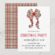 Watercolor Red Green Plaid Bow Christmas Party Invitation