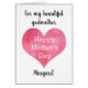 A personalized godmother Mother's Day card that features a watercolor heart, which says "Happy Mother's Day". The inside card message reads "I hope that today and every day is filled with lots of love, laughter & fun. Happy Mother's Day!" The Mother's Day message can be easily edited. The back of this godmother Mother's Day card features the same heart along with the year, which you can easily edit.