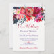 Floral wedding invitation template with a beautiful peony roses bouquet of red, burgundy, pink blush, navy and violet purple bohemian flowers and foliage with a fancy modern contemporary changeable script text. -------- The invitation is ideal for rustic spring or summer floral elegant weddings. ====== Please note that the background colour on the back is editable. To change it, select CUSTOMIZE option.