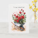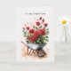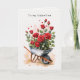 A beautifully romantic, rustic Valentine's Day card for your special garden lover. This charming card features a stunning watercolor floral design of red roses overflowing from a rustic wheelbarrow, creating a unique and heartfelt expression of love. It's ideal for those who love flowers, gardening and vintage-style romantic greetings, with a rustic aesthetic that gives it a unique charm. The design features the words 'To My Valentine' at the top and 'Happy Valentine's Day' inside the card.