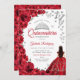 Watercolor Red Roses Silver Quinceanera Invitation