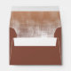 This modern envelope features an interior abstract, watercolor design resembling reflections on water with a gradient colour palette from pale peach to dark terra cotta. The exterior is an optional darker terra cotta. Personalize with the bride and groom's names and address on the back flap using the provided template. Search ID774 to see complete matching set and additional colour options.