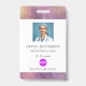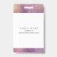 Simple and modern registered nurse watercolor badge in purple, pink and yellow colours. Illustrated and designed by Patricia Alvarez.