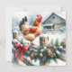 Watercolor Rooster on a Fence Post Christmas Holiday Card