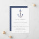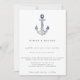 Beautiful watercolor rustic roped anchor with navy blue nautical knot pattern, nautical themed wedding invitation.